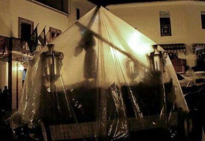 Jueves Santo: El Cristo procesionó solo con un trio de capilla hacia su ermita. La Virgen no salió. (Por desacuerdo en el consejo de hermandades)El Nazareno realiza su propio recorrido saliendo por primera vez solo haciendo la Madrugá, a mitad de recorrido y a causa de la lluvia, cubierto en la plaza por un plástico, marcha hacia la iglesia.