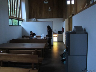 Todo bien, hasta el momento que llega el posadero, originario de Chicago (USA) que por amor, comenta que se quedó en este lugar. Y digo que hasta este momento todo bien porque, al llegar lo primero que pregunta es que cuántos somos, habiendo unas 18 personas. Una pareja adulta había llegado en último lugar y no pueden hospedarse en el Albergue, el pueblo cuenta con 2 hostales más, hasta donde marchan. La siguiente machada es cuando el posadero nos indica que tenemos que sacar todo de la mochila y sacudirlo por miedo a los chinches!!! ya que hay gente que al venir de albergues públicos corren riesgo de traer chinches y el lugar fue desinfestado hace poco por un coste muy elevado… ¡Imagine usted nuestras caras!… el hombre tras decir esto continua su cotidiana bienvenida!.