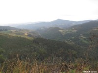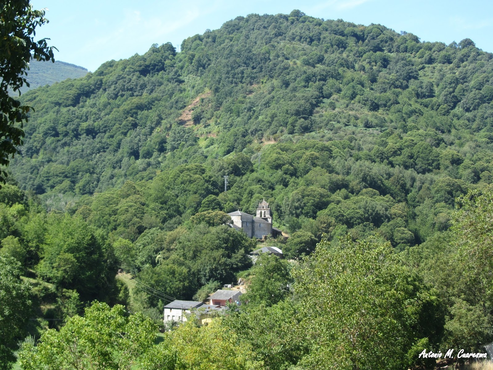 Poco a poco se va divisando en el arbolado paisaje la una iglesia en lo alto de un monte, que a la postre sería la de Las Herrerías.