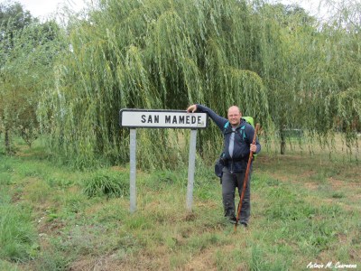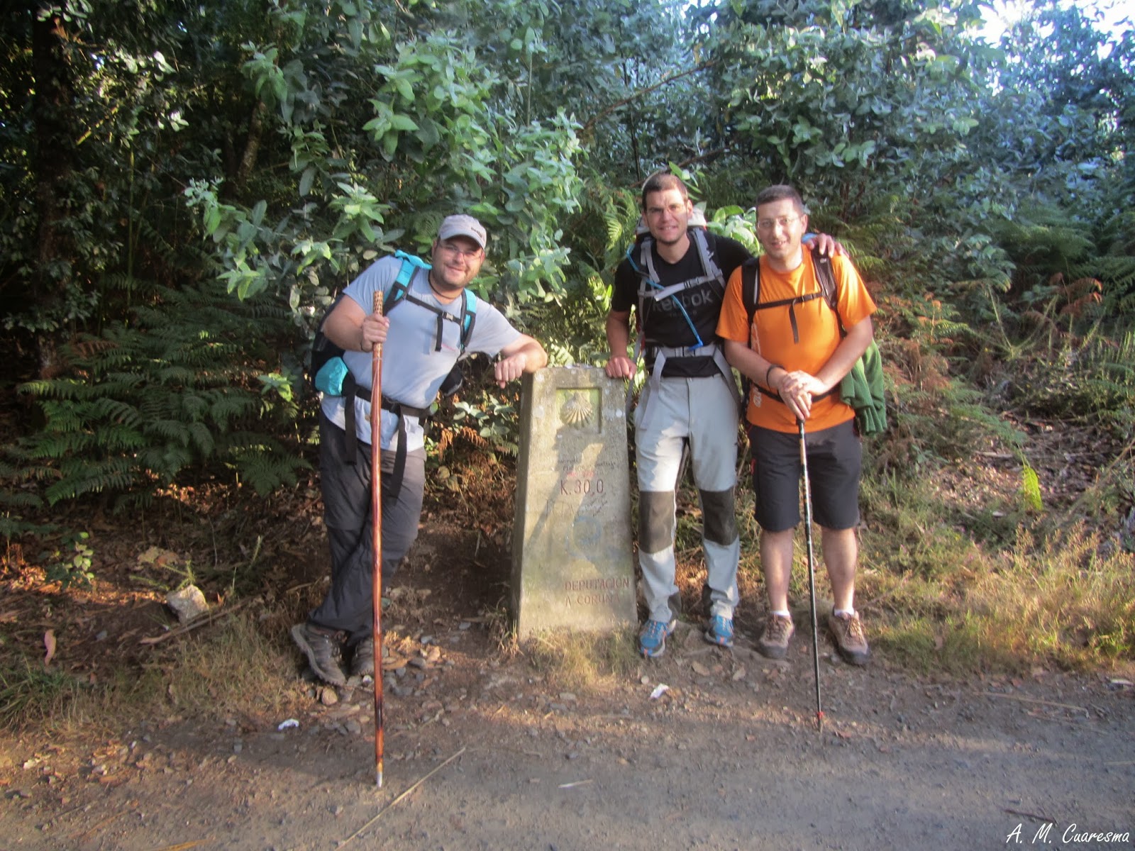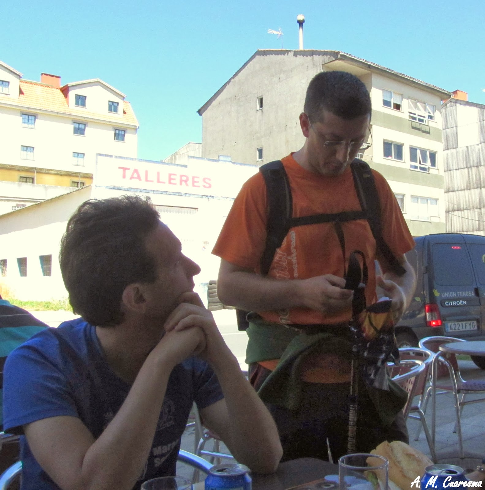 Es Jacobo, que nos ha cogido la vez. Nos cuenta que se ha hecho dos etapas en una para poder llegar hoy también a Santiago, menudo sorpresón y alegría, caminaríamos juntos hasta la meta.