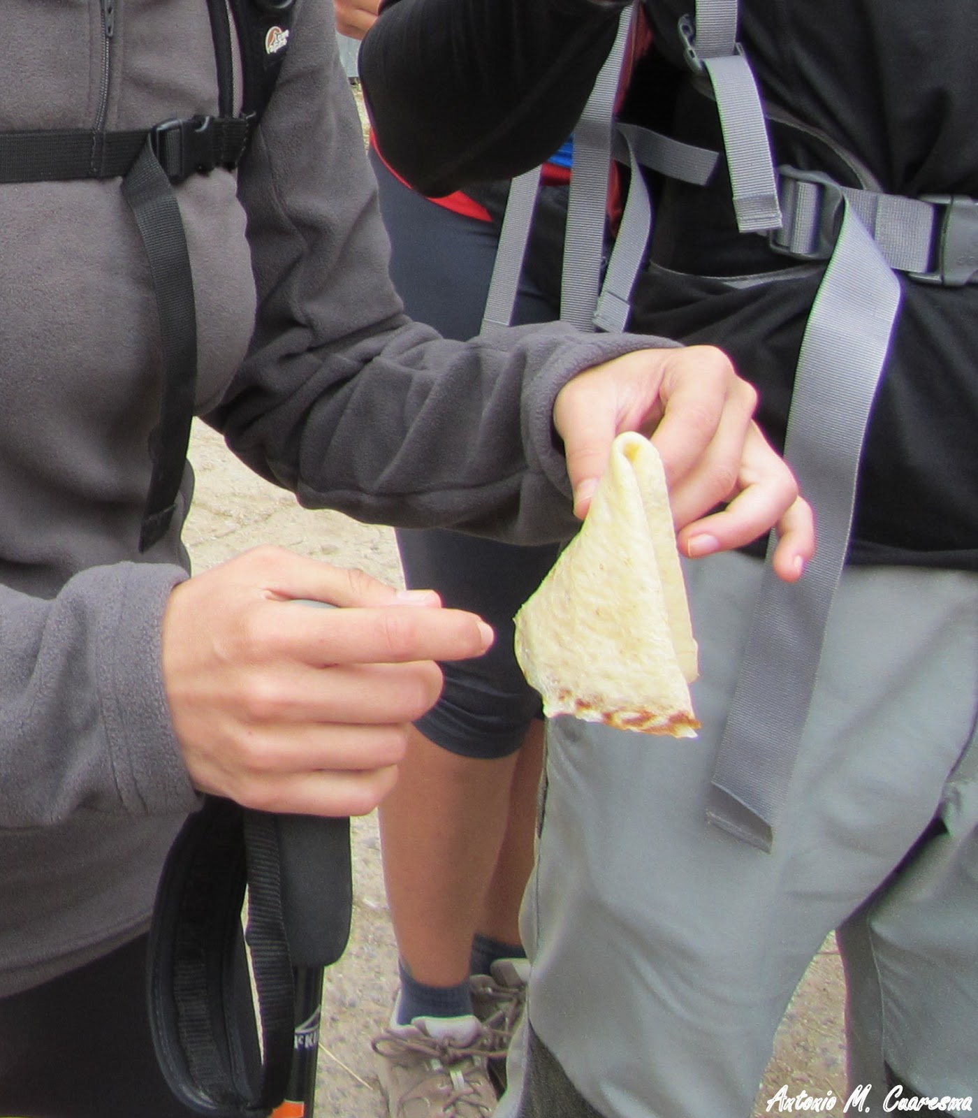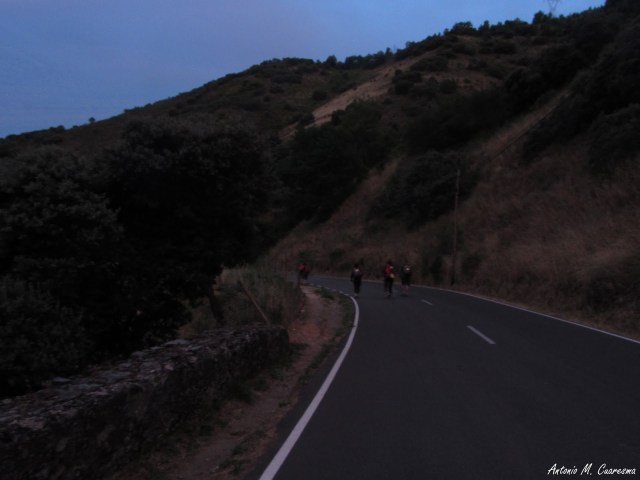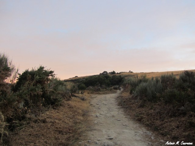 A las 7:00 ya estamos en marcha, último tirón, último estiramientos mañaneros, último desayuno errante, un plátano cae en esta ocasión. Son momentos felices, nos sabemos al final de la senda, los últimos dolores se hacen leves, y la mañana va saliendo con nosotros.