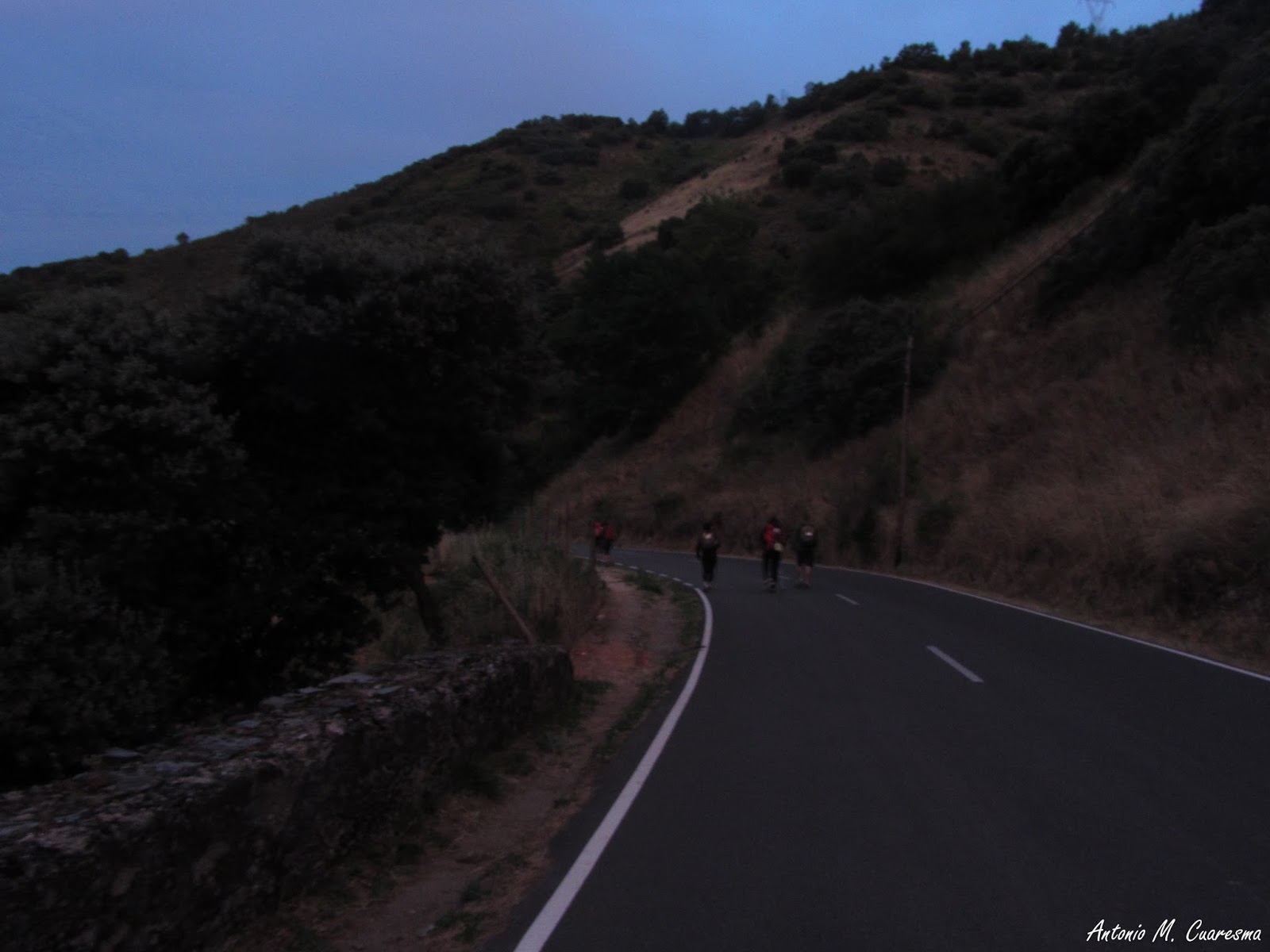Continuamos subiendo, cada uno a su ritmo, o al ritmo que le marcan sus rodillas. La ascensión es dura, pero acompaña la temperatura del alba. El paisaje es precioso, inédito hasta ahora en nuestro camino, y me atrevo a decir que no veremos algo como esto en lo que vendrá más adelante, parece que estamos tocando el cielo, el silencio de la mañana solo se rompe por los voltios que viaja a través del tendido de cables de alta tensión que van por la cima y por los que pasamos cerca.