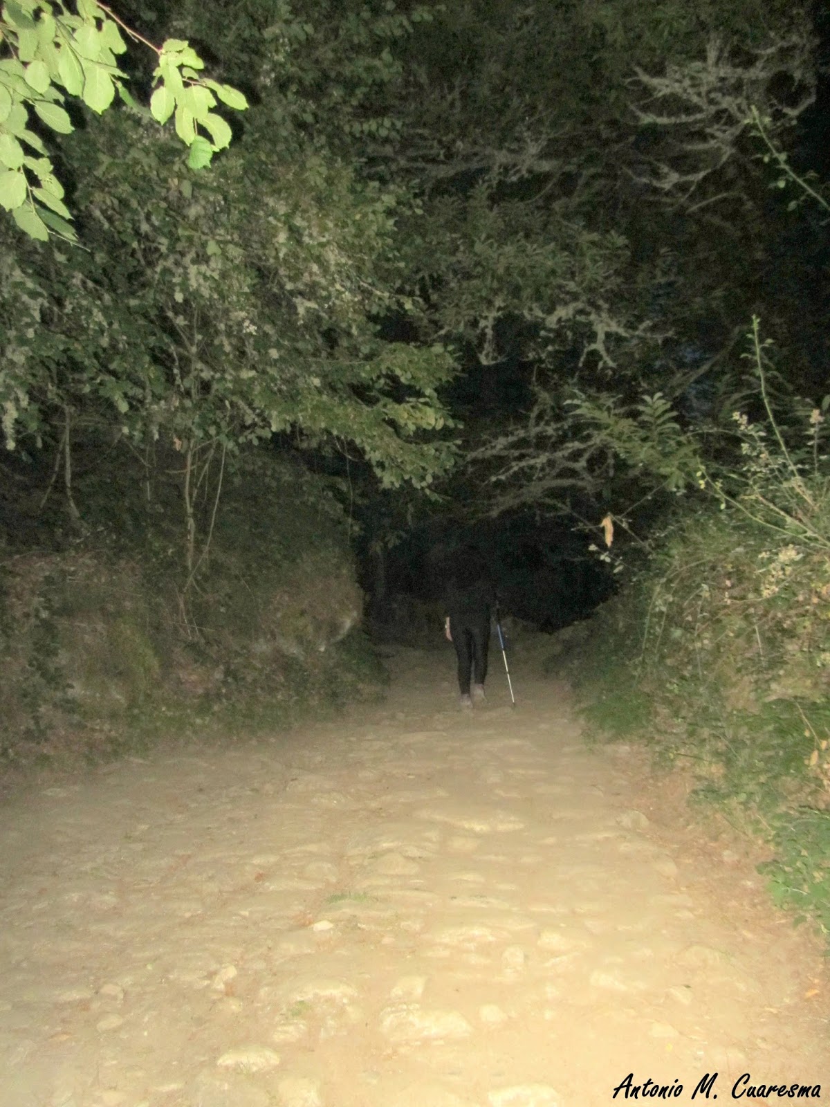 De noche, como apuntaba anteriormente y prácticamente dormidos, algo que ayuda en la subida, para no ser consciente de lo que te estás metiendo para el cuerpo, te echas la mochila a los riñones y comienzas a subir, subir y subir, como si no hubiese fin, se intuye que vas por un túnel formado por los arboles que rodean el Camino. Menos mal que hemos sabido dividir la etapa, y nos quedamos a dormir en Las Herrerías. Recordará el fiel lector, aquel camarero del «Rincón de Coco» en Villafranca del Bierzo… ¡Qué bien nos aconsejó!, y es que ¿quién va a conocer mejor el terreno que un lugareño?. ¡Qué importante fue su consejo!.