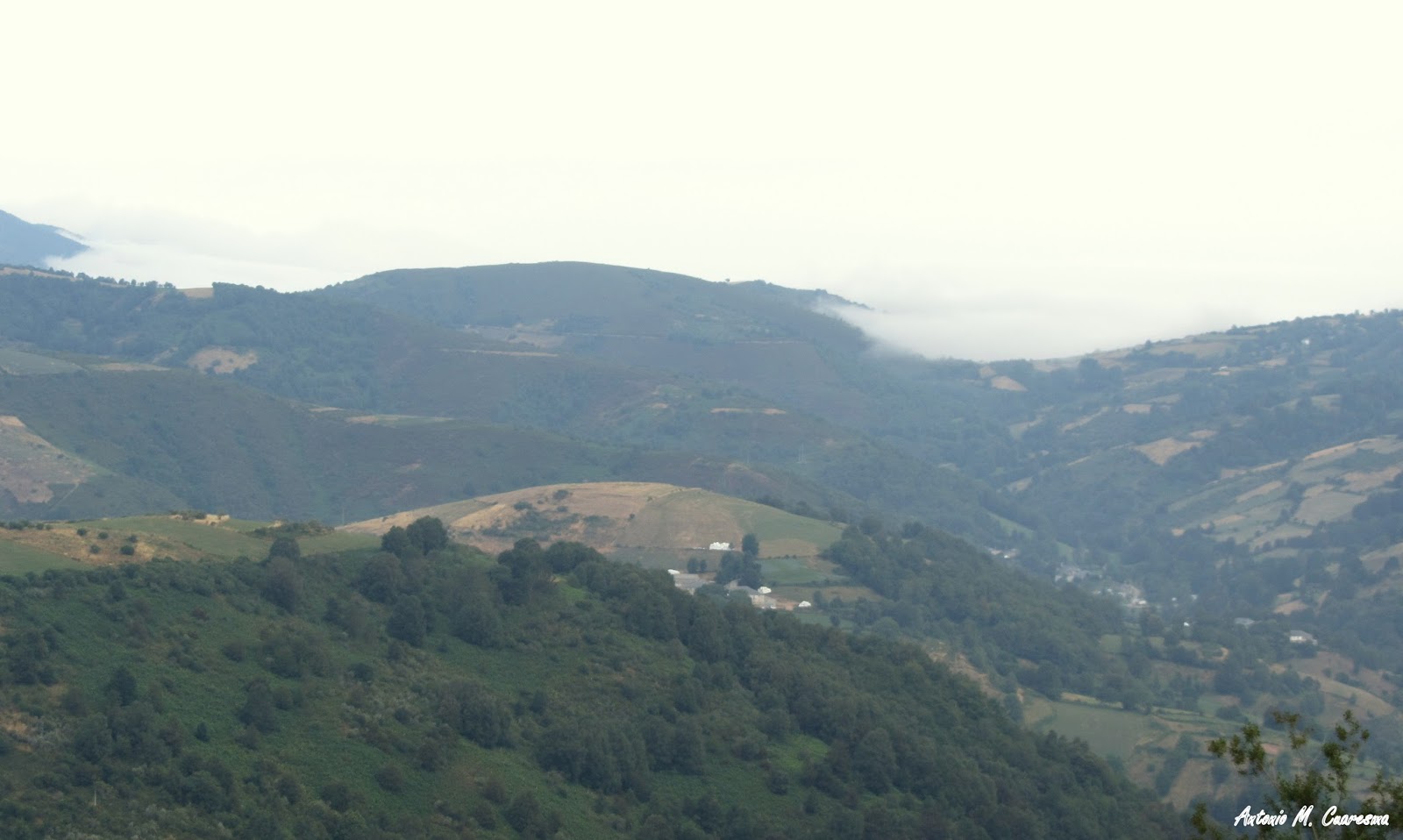 LaFaba (920 m. y 37 hab.). Paradita para beber y hacer grupo… y seguimos subiendo casi monte a través, pero por el Camino, muy bien señalizado con sus flechitas amarillas.
