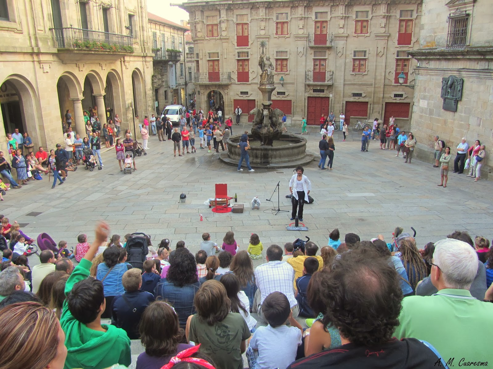 Caminamos ahora por Santiago. Si algo caracteriza a esta ciudad es su ambiente callejero, siempre con actuaciones por muchos de sus rincones, también en su habitual Arco del Palacio, donde las personas que actúan van dejando papelitos enrollados en las piedras y puerta cogiendo la vez de su actuación.
