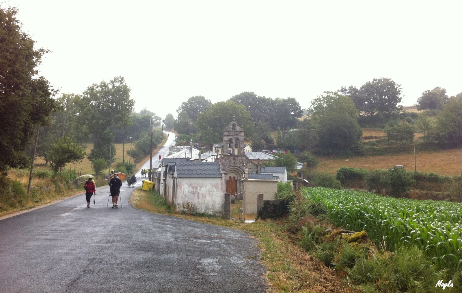 Tras llegar a la intersección con Pereje, nos surge la duda si subir la cuesta que lleva hasta la aldea de 53 hab. o continuar por la carretera. El grupo se divide yendo por el camino, que se presuponía más escarpado y largo, y por la carretera, que parecía más corto. Pero al llegar al final del pueblo los peregrinos que había ido por Camino ya estaban allí… curioso, cuanto menos!