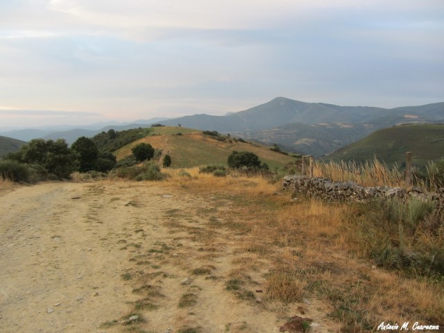 El amanecer ya es una realidad, y volviendo la mirada se ve el precioso paisaje del Bierzo y toda la cadena montañosa que adornada con el color cambiante del cielo, hace de este momento uno de los más mágicos, místicos y telúricos de todo el Camino.