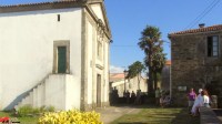 Al salir del Santuario, se ve a la derecha una arquitectura circular, con techumbre vegetal, llamada palloza. Es el tipo de construcción qué ha sobrevivido de época prerromana.