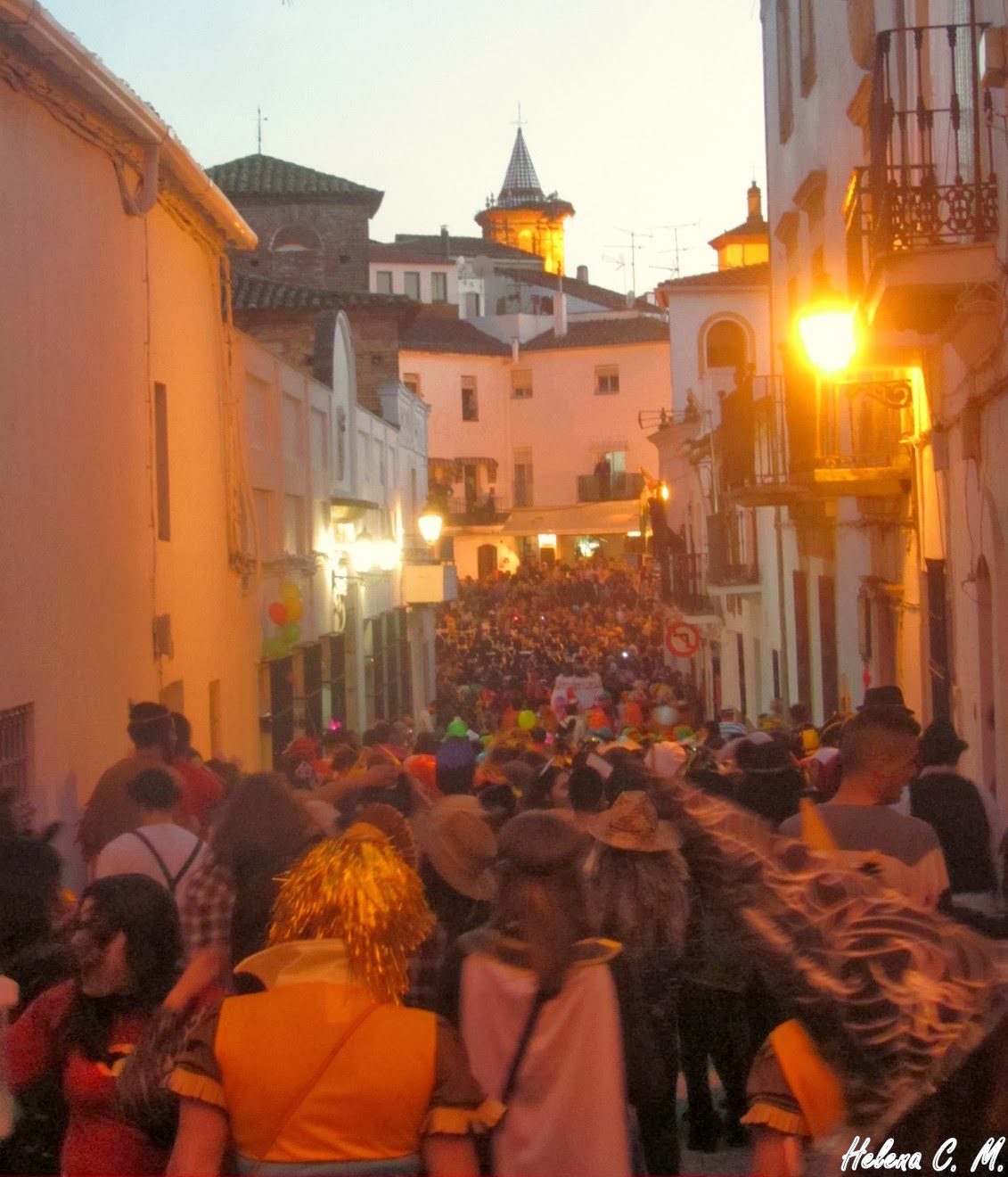 Son casi las 19:00 cuando sale el pasacalles, su organización por la cantidad de gente que participa es cuasi imposible.Una hora después llegamos a la Plaza, (sin la tradicional parada en la cafetería, que está cerrada). Alucinante la vista de la plaza con toda la Calle Real repleta de carnavaleros.
