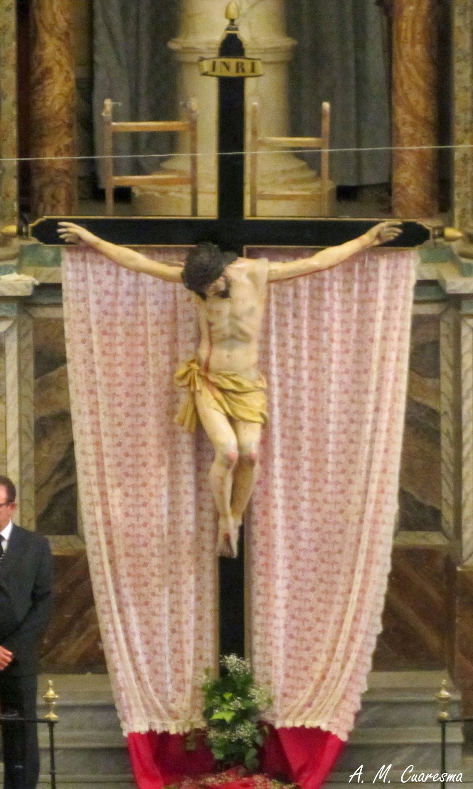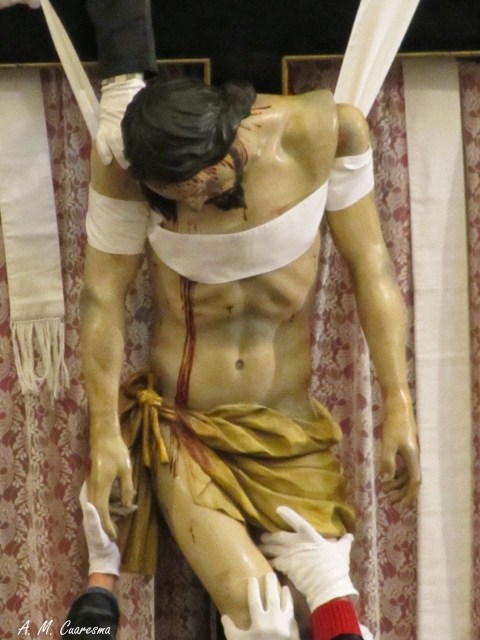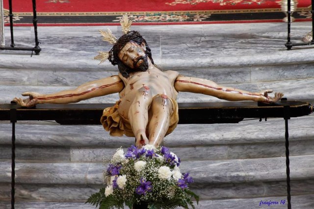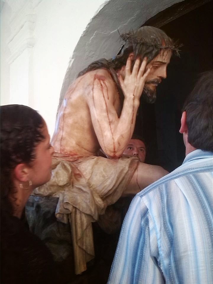 ATENCIÓN: El brazo derecho del crucificado presenta un deterioro que no tenía en 2013, recordemos que esta imágen no es de madera, sino de una especie de pasta que puede hacer que se deteriore con más rapidez.