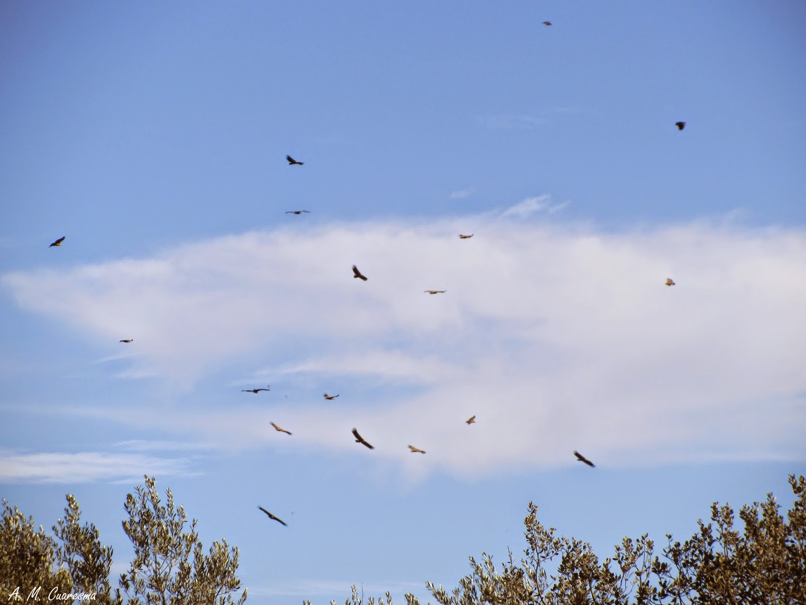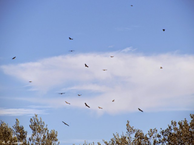 Son dos de las especies de buitre que se pueden ver por Aroche, y además fácilmente paseando por el campo. “La joya de la corona es el buitre negro”. Mientras más nos alejemos de la población más posibilidad hay de verlos, suelen aparecer en gran número de ejemplares.