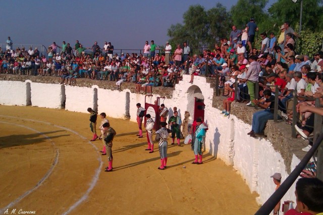 Curiosamente en la plaza de armas del castillo de Aroche se encuentra desde el siglo XIX el coso taurino de la población. Durante la Feria de agosto se lidian toros y hay juegos de vaquillas. Algo digno de destacar es el encierro de los animales en los toriles, ya que en la feria se celebra el tradicional “encierro” en el que es todo un espectáculo pensar cómo los toros van subiendo al trote desde las traseras de la iglesia por las calles hasta llegar a la plaza de toros.