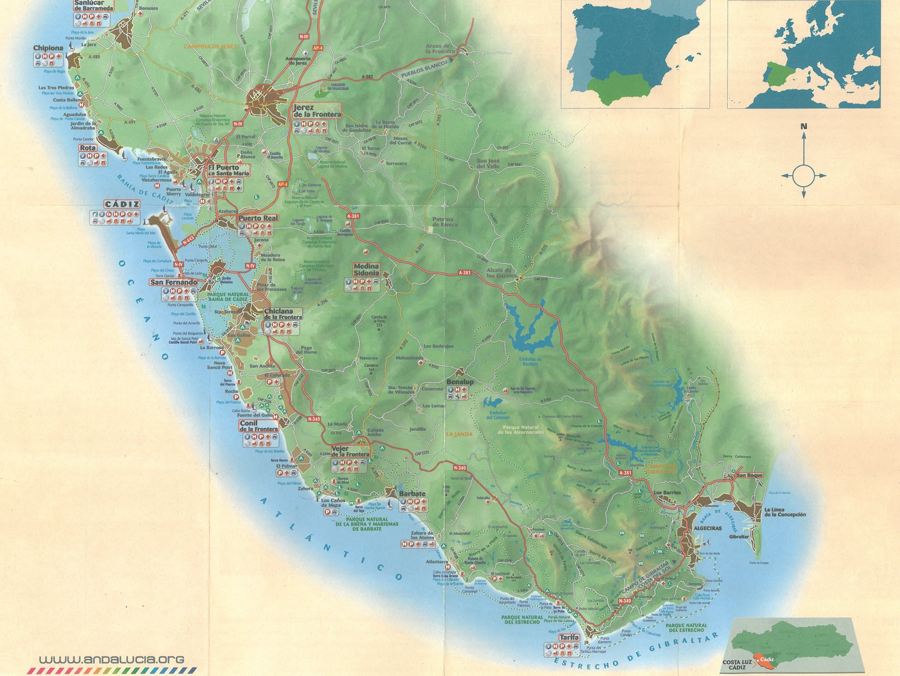Cádiz: La Caleta, Playa de Santa María, Playa de la Victoria y Playa de Cortadura. San Fernando. Puerto de Santa María, Puerto Real y Chiclana.