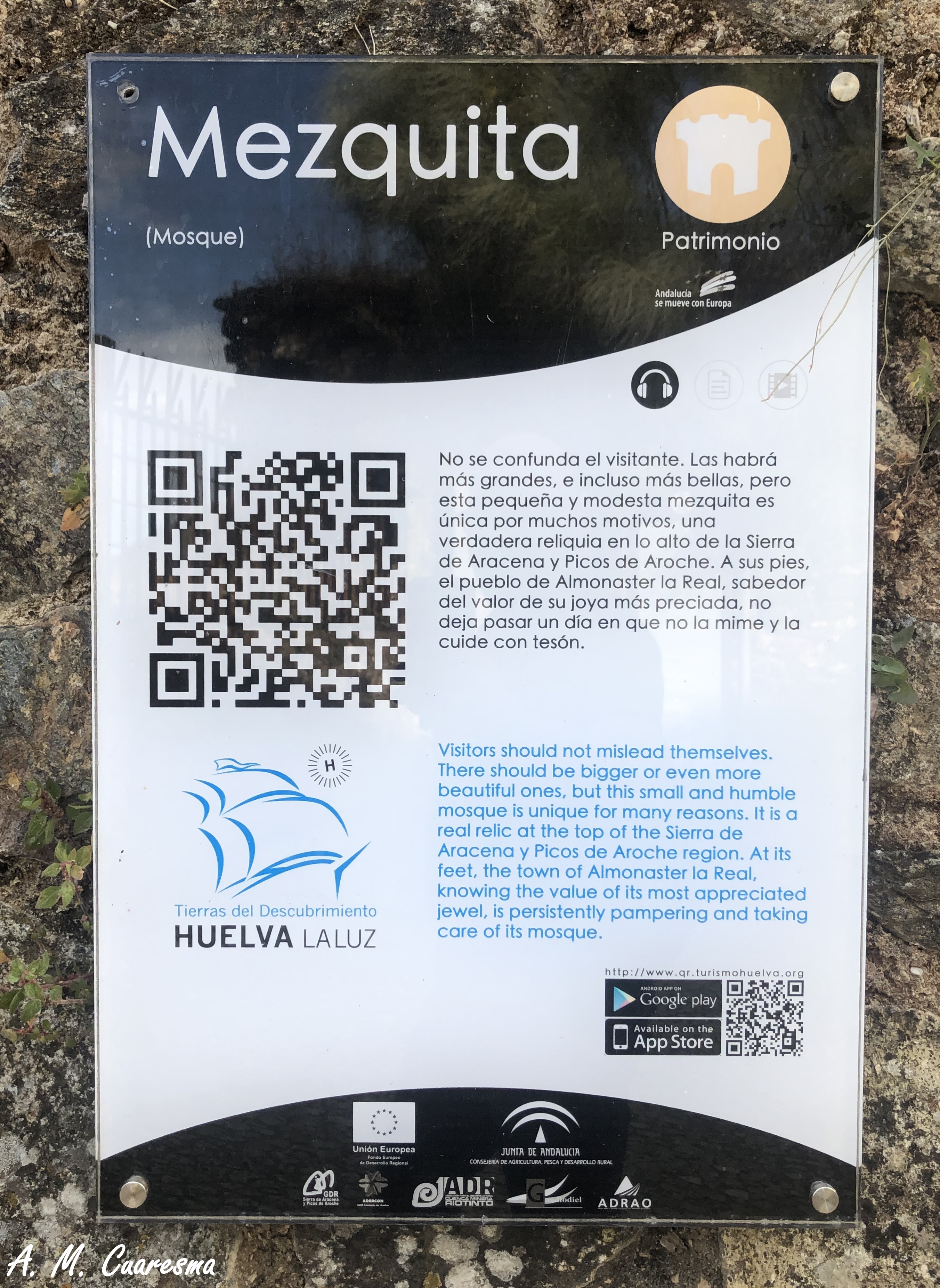 Códigos QR sobre la mezquita y Almonaster la Real