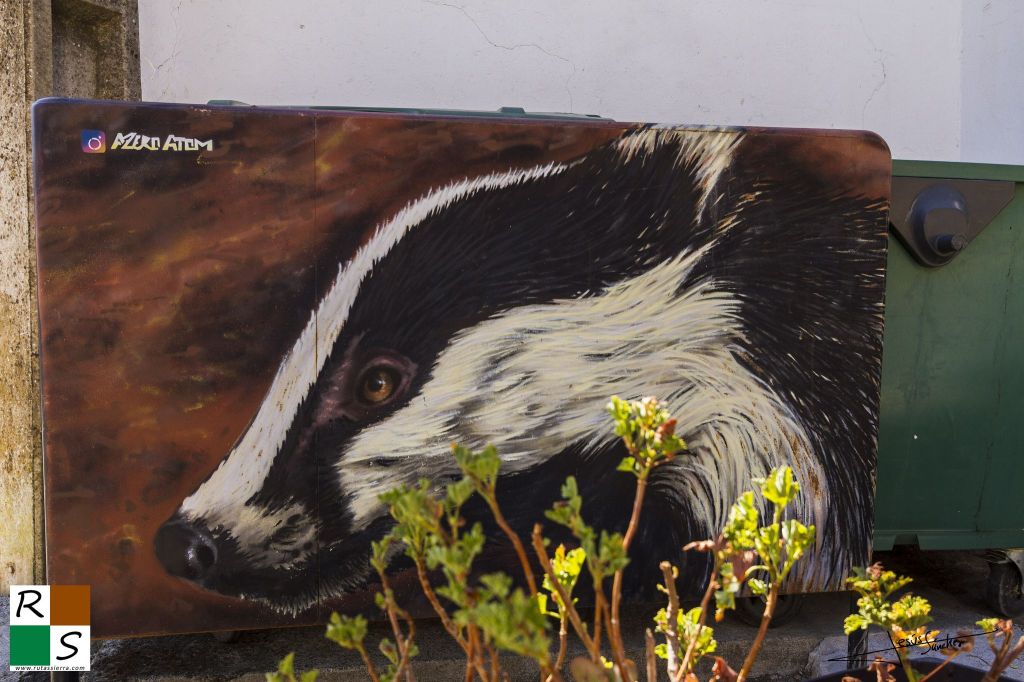 Yo siempre he dibujado mucho, pero concretamente con los murales empecé en el año 98, con los primeros botes de pintura que no tienen nada que ver con los que se usa para realizar murales, fue entonces cuando realicé mis primeras pruebas, haciendo, principalmente, letras. Así con el paso de los años comencé a hacer murales en algunos pueblos de la zona y surgió el poder pintar en Santa Ana la Real para embellecer los contenedores, alrededor del año 2015/2016. Comenzamos entonces a realizar unas pruebas pintando directamente en el contenedor, pero con todo el trasiego que conllevan se descascarillaba la pintura y llegamos a la conclusión que lo mejor sería utilizar un soporte metálico que cubriese el contenedor. Llegando, en el año 2017, a tener el sistema que podemos ver hoy día en el pueblo y conservándose en muy buen estado desde entonces.
