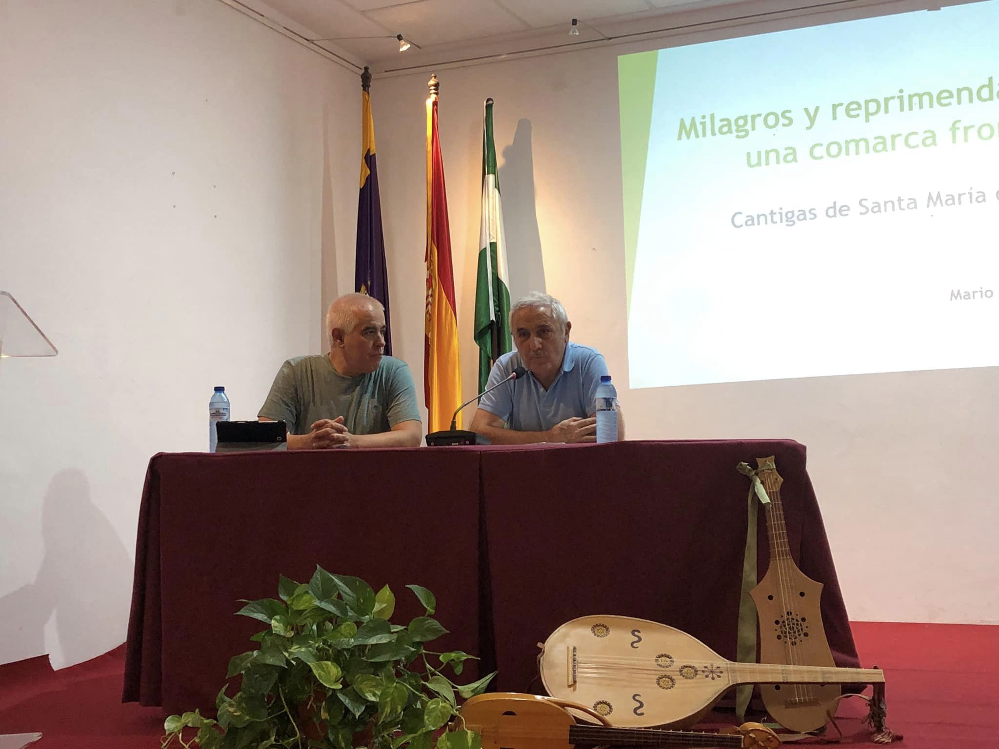 La primera charla de este sábado 31 de agosto de 2024, corrió a cargo de D. Mario Rodríguez, escritor serrano, que ha ejercido como maestro y es uno de los máximos exponentes en el estudio de las Cántigas, concretamente de las que se refiere a pueblos de la Sierra de Huelva, Aroche y Cumbres Mayores. Su ponencia trató los «Milagros y reprimendas para una comarca fronteriza. Cantigas de Alfonso X y Santa María de Terena», en la que abordó el significado de las cántigas en su totalidad, tratando profundamente las que atañen a las dos localidades serranas.