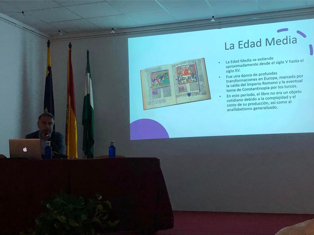 La conferencia inaugural corrió a cargo de D. Rafael Cid, Doctor por la Universidad de Sevilla, presidente de la Asociación Andaluza de Profesionales de la Información y la Documentación (AAPID), profesor-tutor de la UNED, Técnico Bibliotecario del Ayuntamiento de Sevilla y director de la Revista de Humanidades (WOS y Scopus) y miembro del grupo de investigación (HUM-801) de la US. Su participación versó sobre «El mundo del libro en la segunda mitad del siglo XIII, época de Alfonso X el Sábio», en la que realizó un recorrido por los avatares del libro desde finales de la Edad Media hasta hasta el siglo XIII.