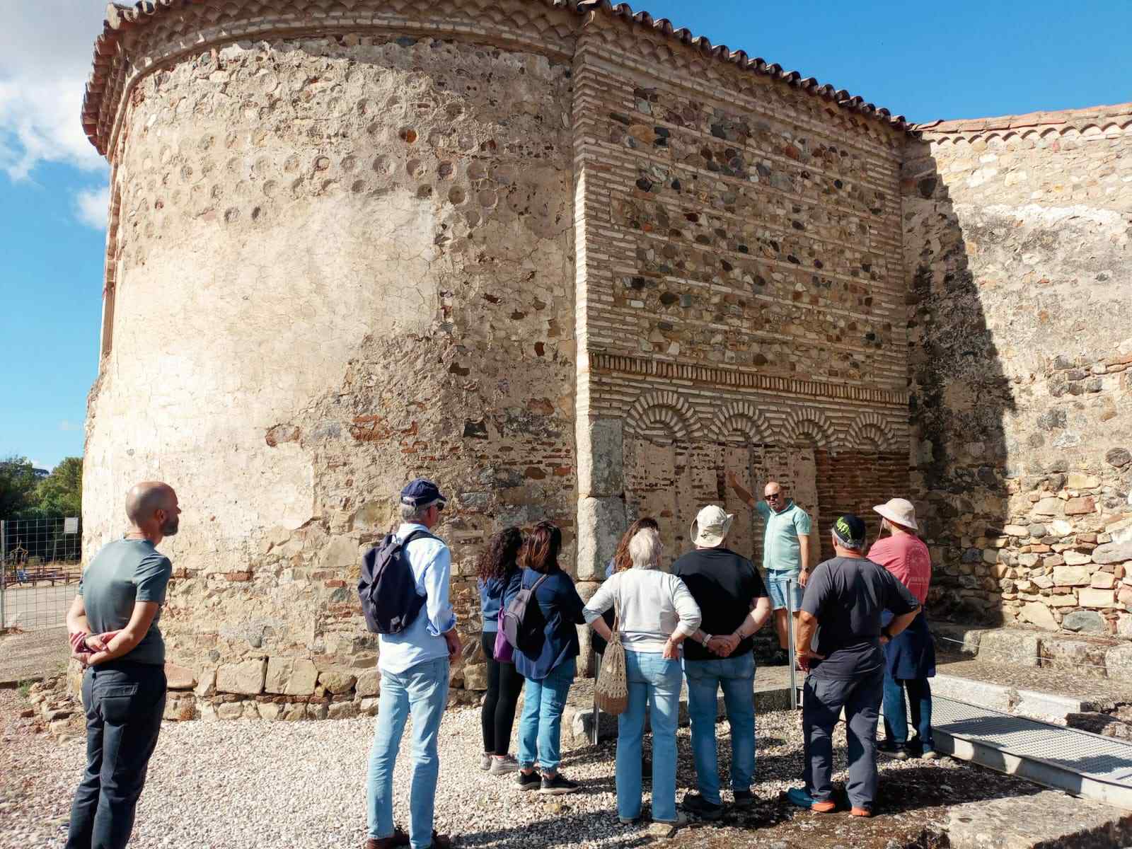 Tras desayunar en el Bar Las Lajitas, desde donde hay unas espectaculares vistas del pueblo, marchamos hasta la ciudad hispanorromana de Arucci, Turóbriga, para recorrer su foro, mercado, termas, viviendas, muralla y campo de Marte. A continuación, nos detuvimos en la ermita de San Pedro de la Zarza, hoy bajo la advocación de San Mamés, ermita de repoblación con un impresionante conjunto de pinturas murales que van desde el siglo XV al XVII. Todo ello ubicado en un paraje generado por el río Chanza llamado Llanos de la Belleza.