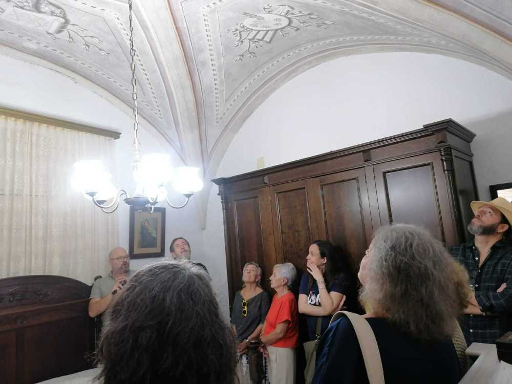 En nuestro recorrido tuvimos la suerte de poder entrar en una casa particular para ver los techos des dos de sus estancias con motivos pictóricos, que sumamos también a nuestra base de datos de murales en la Sierra que cuenta ya con más de ciento ochenta motivos desde el siglo XV al siglo XXI.