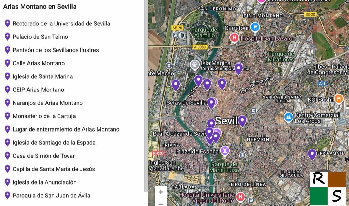 LUGARES RELACIONADOS CON ARIAS MONTANO EN LA CIUDAD DE SEVILLA
